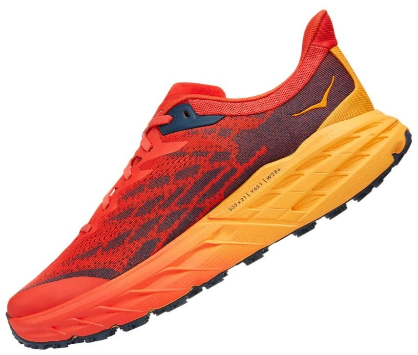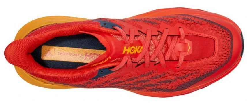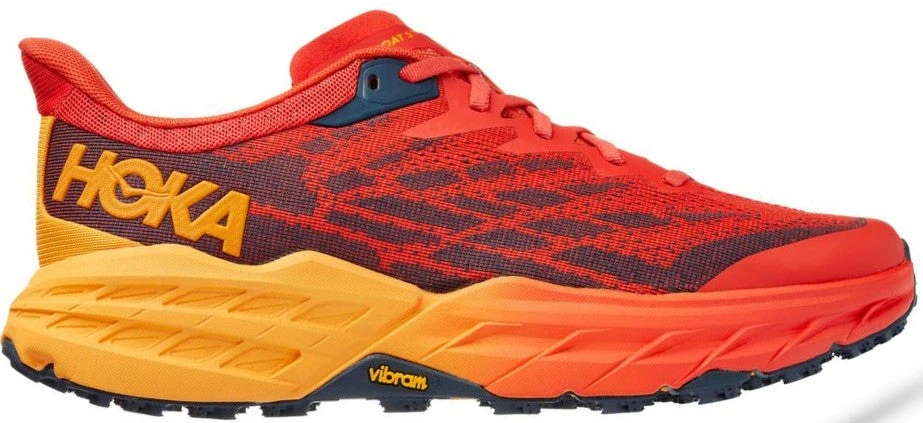 The HOKA Speedgoat 5 will have you feeling surefooted on the roughest of terrains. Featuring a new midsole that is lightweight and provides a more responsive ride with even more traction than before. The wider forefoot offers a more stable ride and an accommodating fit. The Vibram Megagrip rubber outsole provides exceptional grip in wet and dry conditions. The all-new updated upper brings this running package together providing breathability and overall comfort.